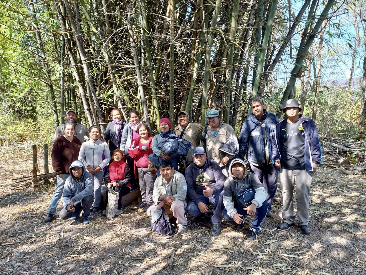 Para esto se hicieron dos bancales, uno al ras del suelo y otro de otra forma, para experimentar cuál es la solución más apropiada al lugar. También se realizó la primera jornada de manejo de bambusales, en un terreno de la empresa Ledesma, previamente identificado y acordado. Se cosecharon 50 cañas, que quedarán en reposo durante tres semanas, para que el material libere la sabia. Serán utilizadas para la construcción de un centro de artesanos en el predio de la comunidad.