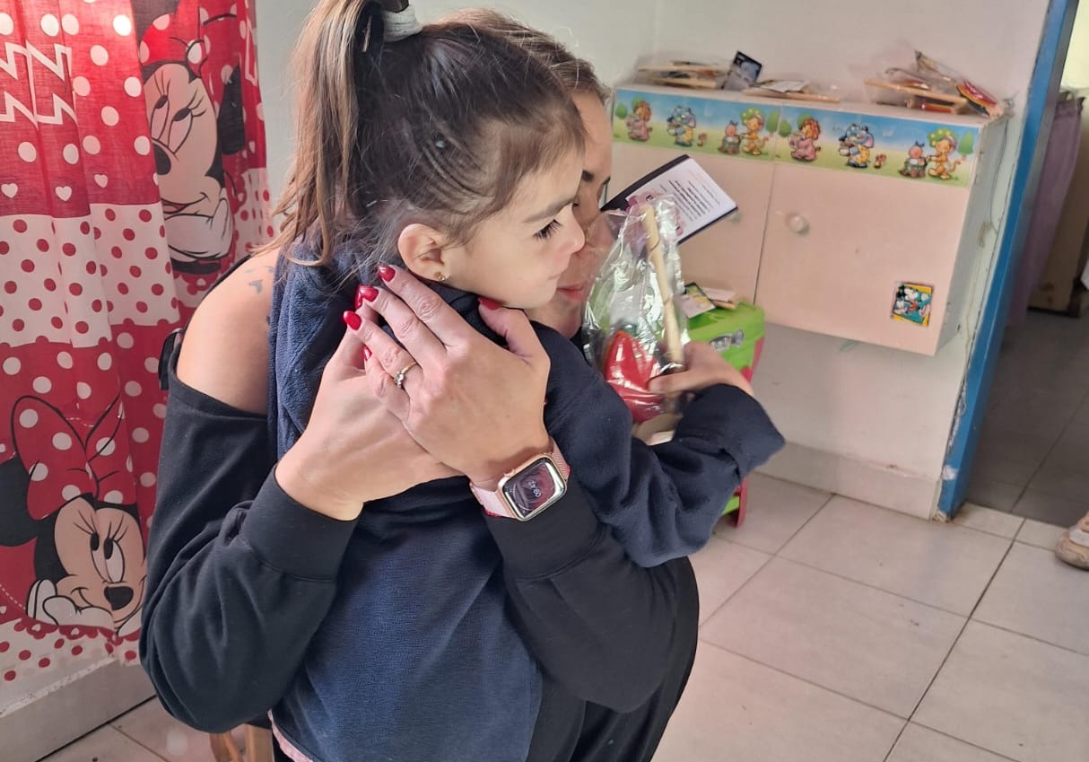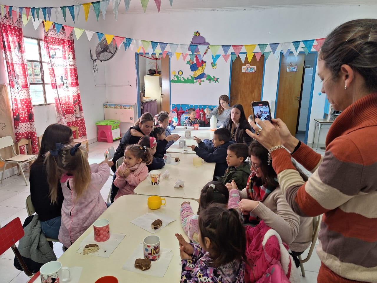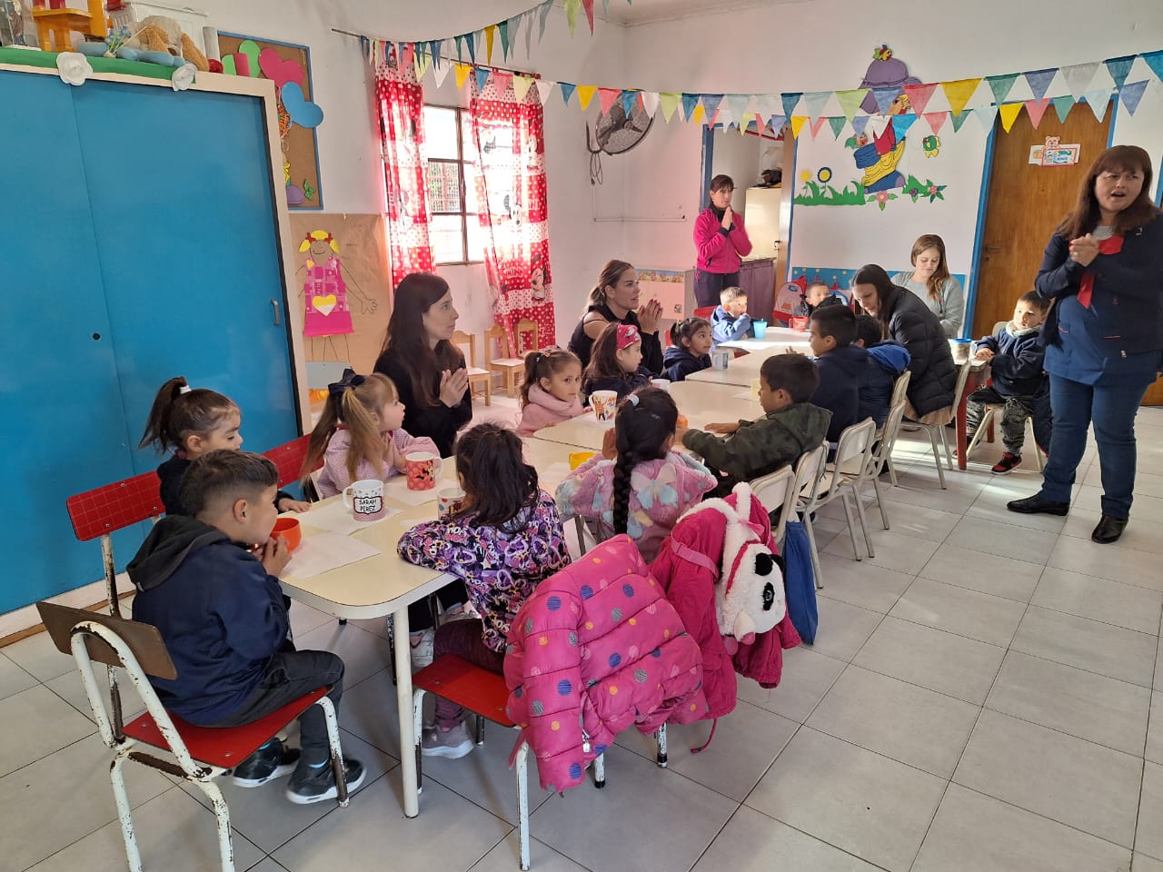 Se concretó una visita a la institución para compartir junto a la salita integrada de 4 y 5 años un desayuno y entregarle un regalo a cada peque: un juego de madera elaborado de manera artesanal que les permite simular la acción de pesca, fomentando su concentración y motricidad.